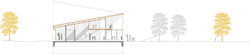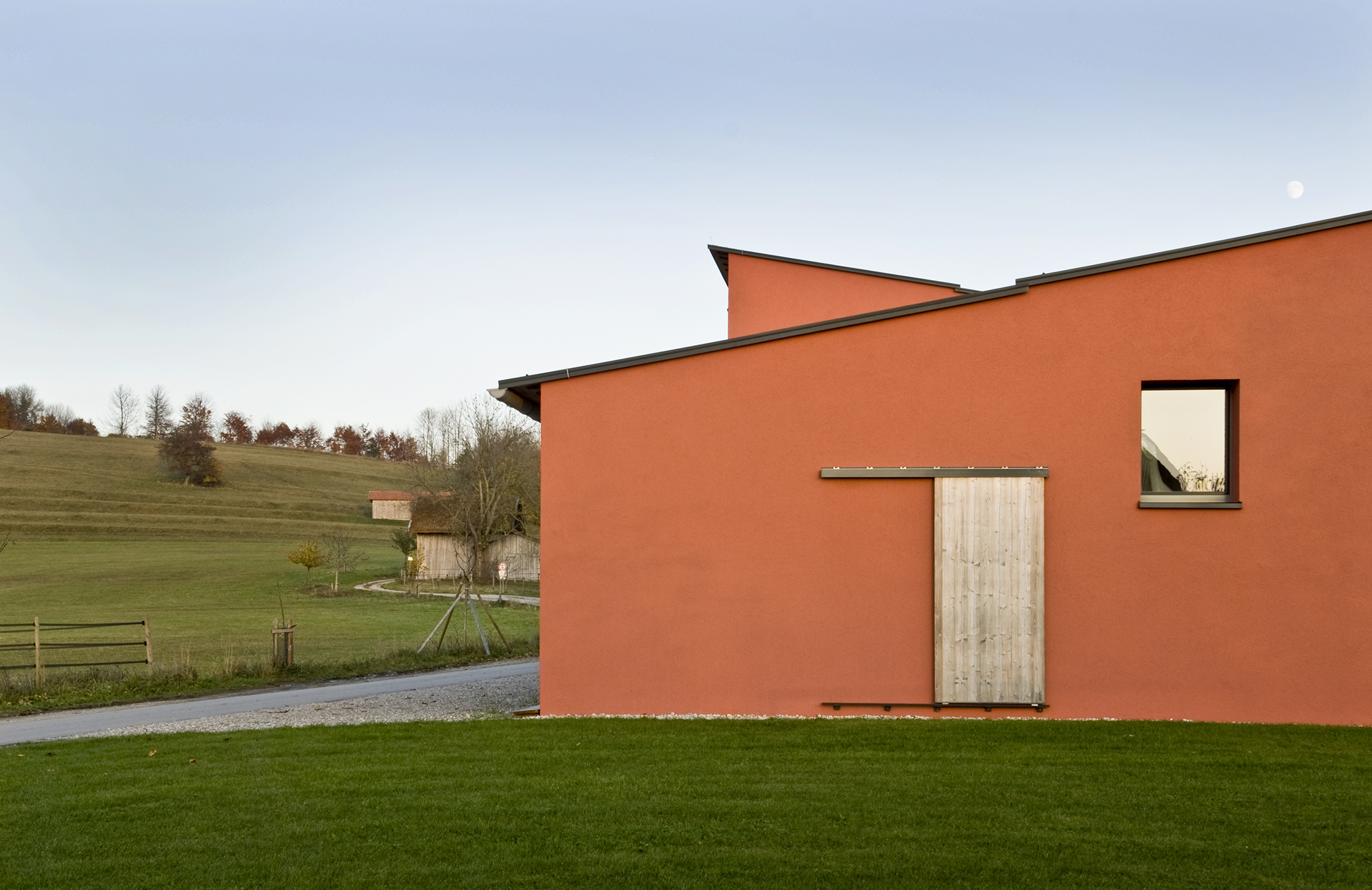 Das Haus für Kinder bietet einen Ort für Kinder von 1-10 Jahren. In Analogie zu den Nebengebäuden der Kirche gliedert sich der Bau in zwei gegeneinander gestellte Pultdachkörper: in einen mit den Gruppenräumen nach Süden, und den zweiten höheren, mit Verwaltung und Bewegungsraum nach Norden mit Blick in die Landschaft. Die vier Meter tiefe Südterrasse und die breiten Türen verweben die Gruppenräume innen wie aussen. Die hinein gestellte Galerie mit den Nebenräumen sorgt für die nötige Variabilität in der Nutzung.Konstruktion