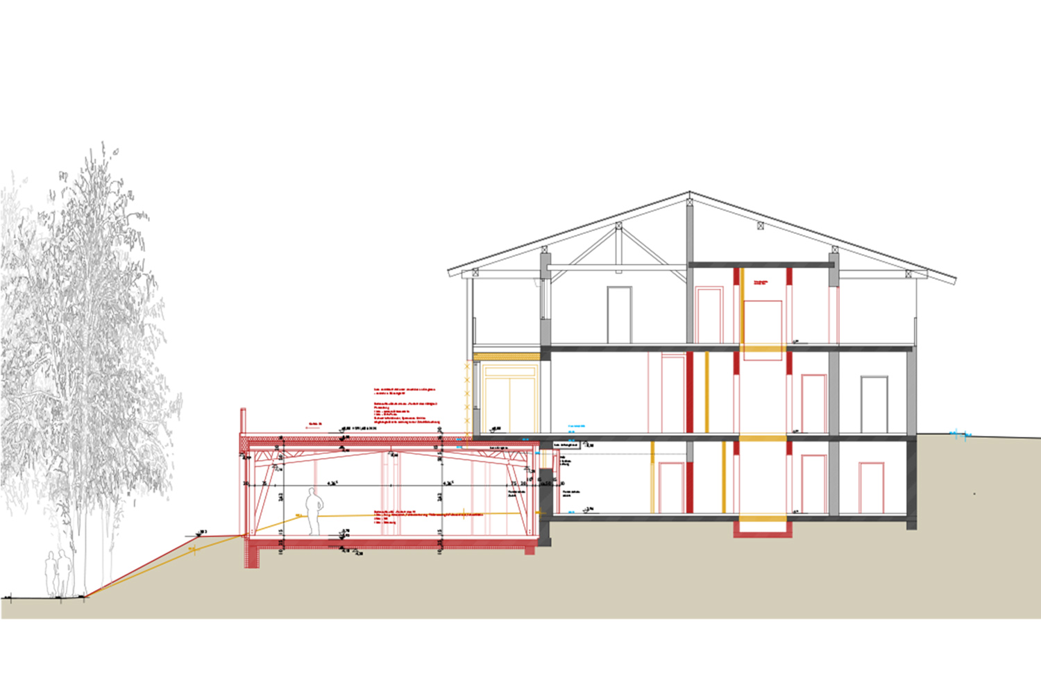 Das bestehende Gebäude mit Tages- und Abendrestaurant, sowie zwei kleinen Tagungsräumen, sollte durch einen großen, teilbaren Fest- und Tagungsraum erweitert werden.