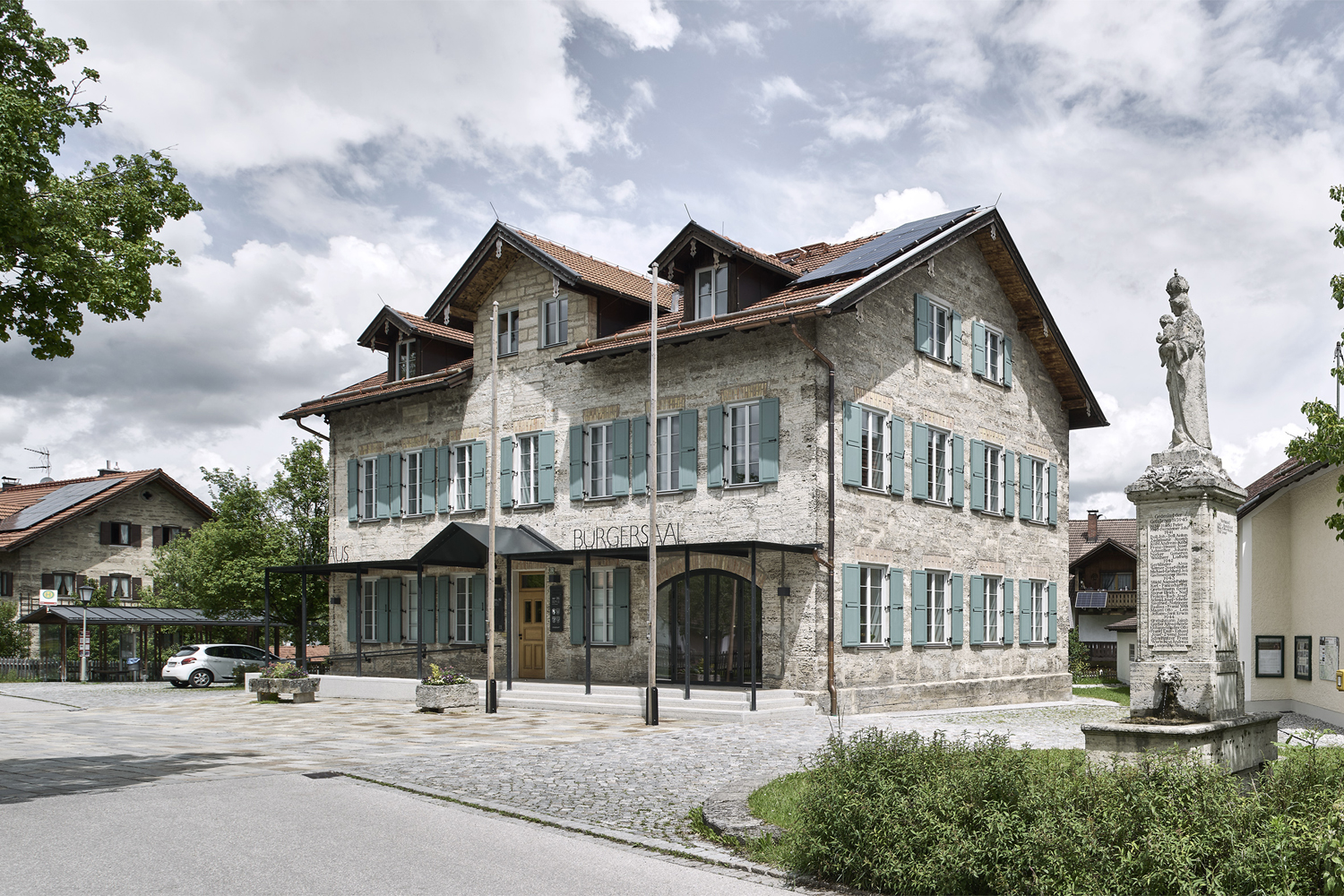 Im umgebauten Rathaus erhielt der Brügermeister sein Büro gleich im Erdgeschoss neben dem Eingang. Gegenüber in der ehemaligen Feuerwehrgarage kam der Bürgersaal unter, der auch für die Gemeinderatssitzungen und für Trauungen genutzt werden kann. Der direkte Zugang vom Dorfplatz aus ist Programm: gelebte, transparente Demokratie.